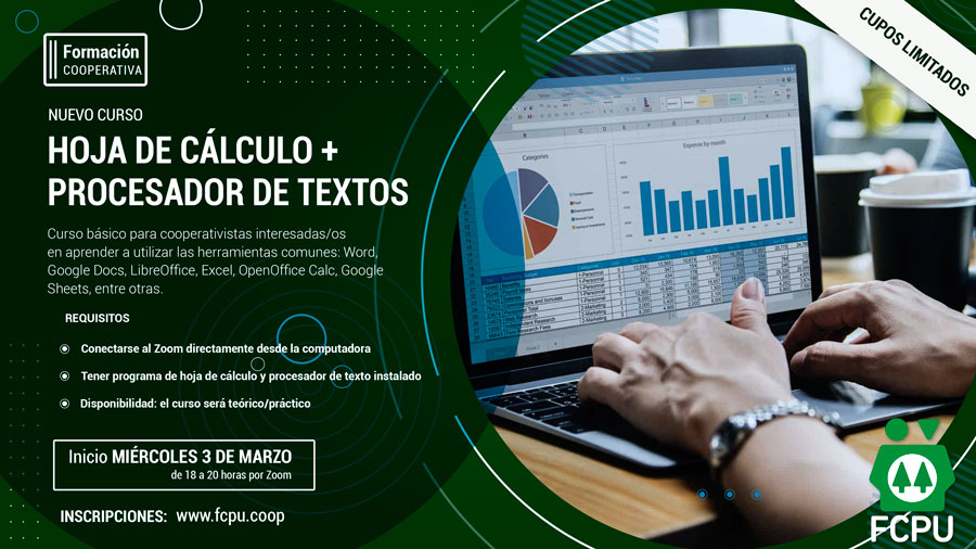 ¡Atención Cooperativistas! FCPU lanza el curso básico de Hoja de cálculo + Procesador de textos, una buena oportunidad para aquellas personas que no están familiarizadas con las herramientas...