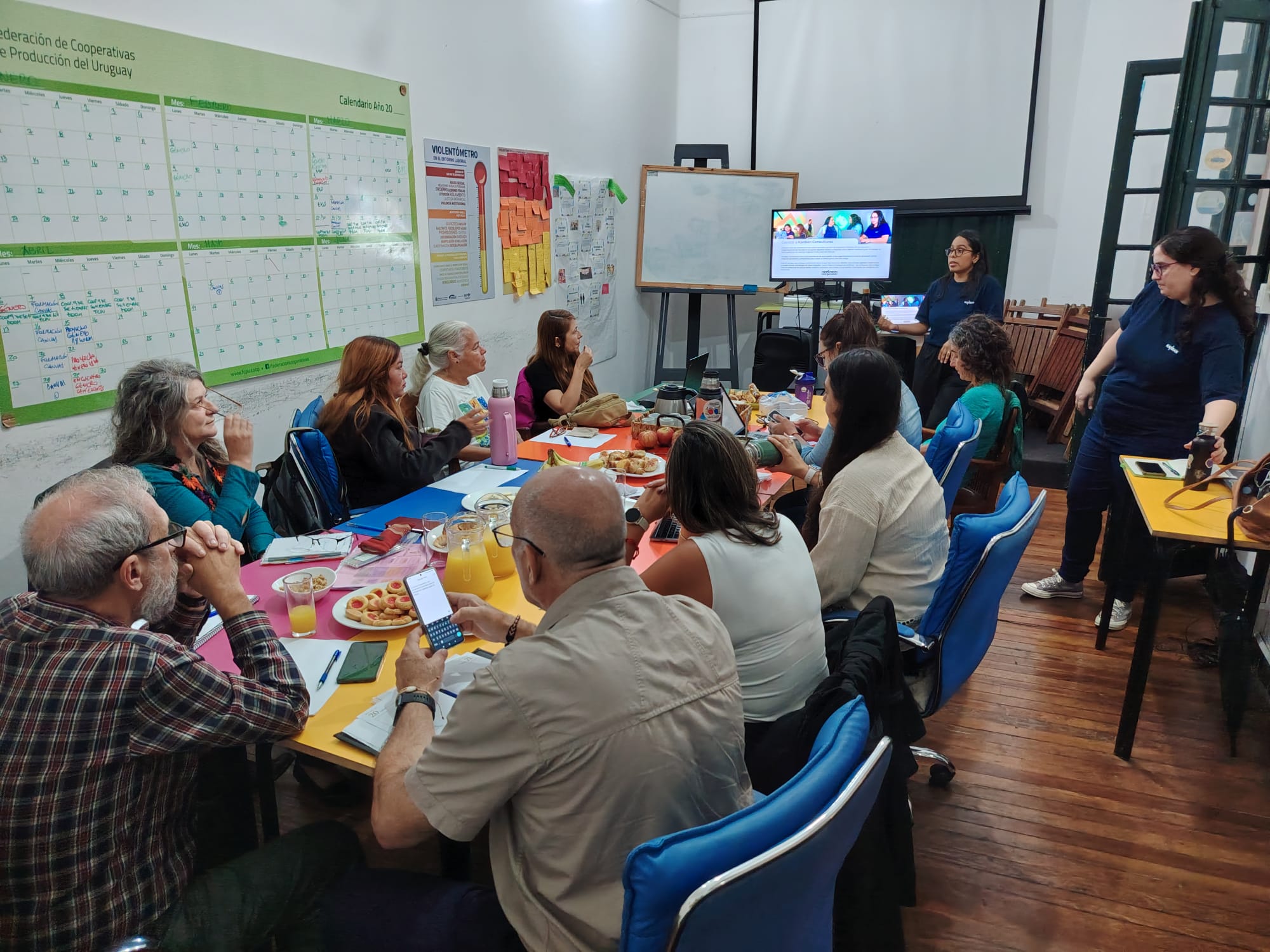 El cuarto taller giró hacia la dimensión pedagógica. No se trató solo de aprender una herramienta, sino de pensar cómo enseñarla. Se trabajó en la construcción de metodologías de formación, en el diseño de materiales y en la generación de preguntas que guíen a las cooperativas en cada etapa del proceso. La lógica fue clara: una herramienta potente necesita también una estrategia clara de transmisión para escalar su impacto.
